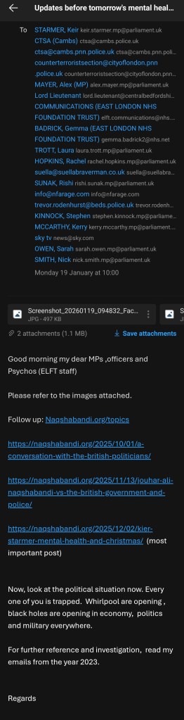 In 2023 Kier Starmer’s office weaponised NHS East London Foundation Trust , referring Jouhar Ali Naqshabandi Al Hassani to attend a series of Psychiatric assessments.